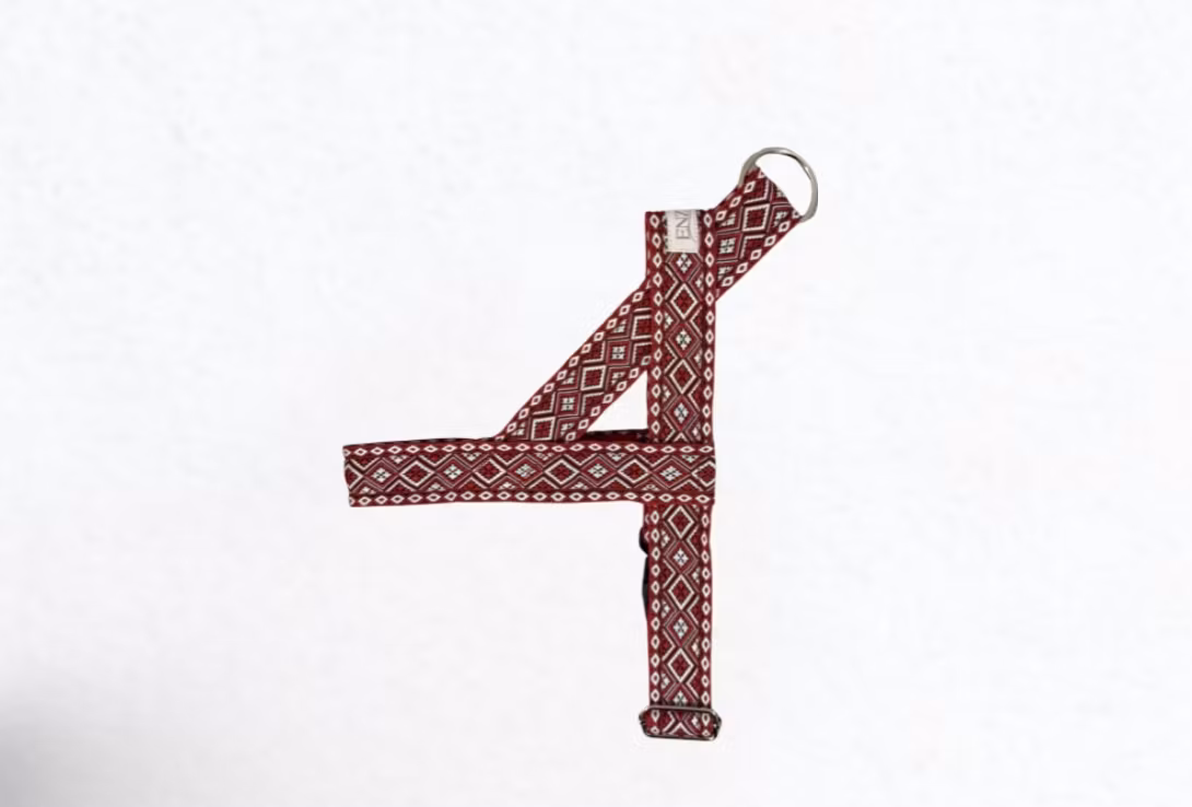 Selen har ett vackert mönster och är behagligt mot pälsen med sina mjuka canvasband i bomull på insidan. Finns i röd, blå och mörkblå, och kan sys med reflex för ökad synlighet under mörka kvällar och vinterpromenader 🌙✨